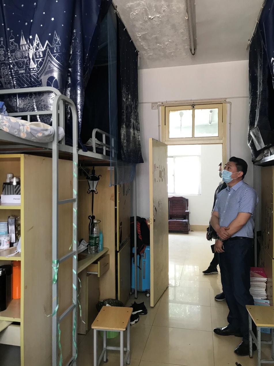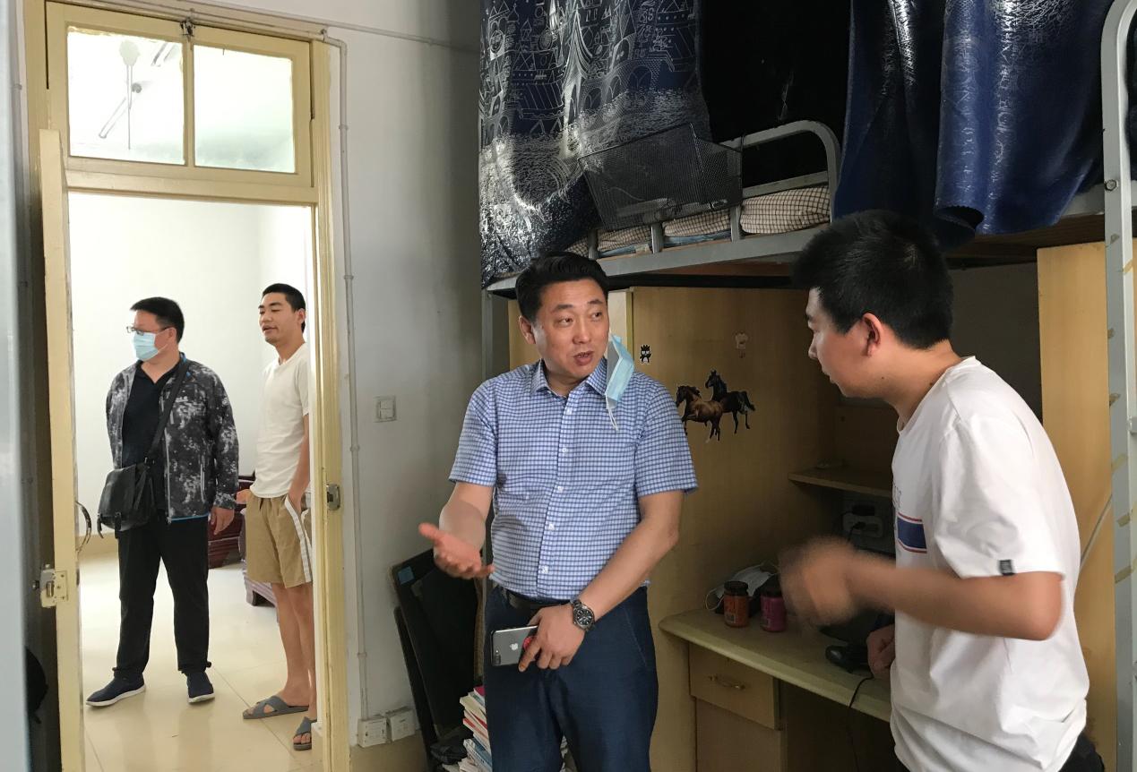 走访过程中,滕书记与与同学们亲切交谈,详细询问他们返校以来的学习生活情况以及毕业去向,告知他们如有难处一定要及时与班主任和辅导员反映,让同学们感受到来自学院的关心和家一般的温暖。滕书记还提醒同学们,虽然现在在校同学不多,但也要保持宿舍的干净整洁,勤打扫,否则不利于自己的身体健康。