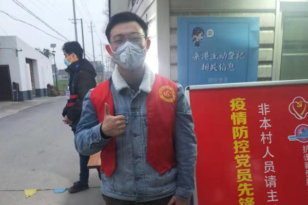 教科1708班的葛佳浩自愿报名参加了他们村的防疫检查站的志愿者。他表示,参加志愿者活动,让他明白了广大一线工作人员的不容易。起初去防疫检查站内心有点忐忑,到了检查站,由于是临时搭建的里面的设施还是比较简陋的,但应有的消毒设施,体温表,登记表,口罩等还是有的。在检查站站了一天的岗,仔细排查过往车辆和行人并无可疑情况。在村里大家的防范意识还是很高的,能积极主动做到不聚会、不串门。临走时检查站的大哥给他拍了几张照片,他说这是最近最棒的照片!