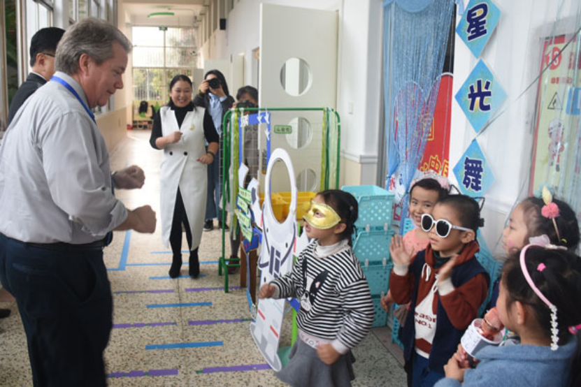 图为教科院四名外教赴淮安市实验小学交流学习现场。记者 刘星彤 摄