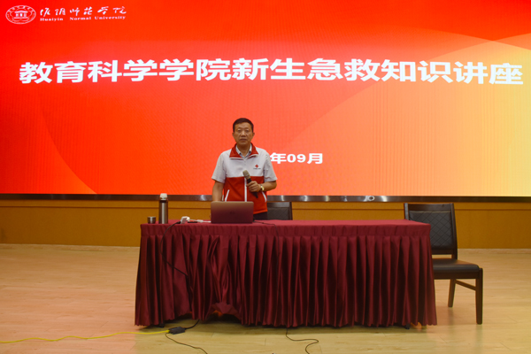 教科网9月25日电(记者 周颖 薛玉珏 陈萌)近年来,大学生各种突发事件导致伤亡案件较多。为此,9月24日晚,教科院在崇文楼106开展了新生急救知识讲座。淮阴区红十字会王兆军为主讲人,教科院2019级新生参加讲座。