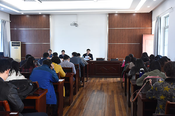 图为教科院召开全体教职工大会。记者 齐琦