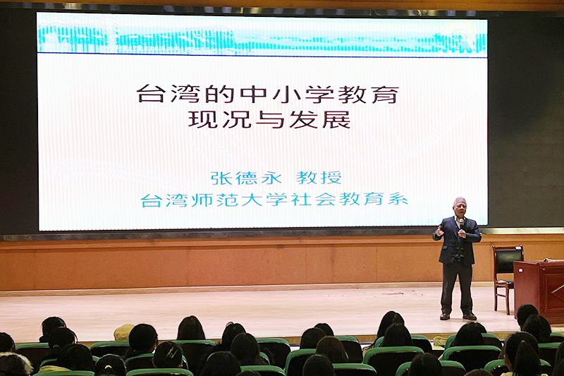 张德永从台湾的中小学教育所面临的挑战与回应、台湾的中小学教育的未来发展规划及大陆学生应该做好的准备三个方面展开讲解。他指出,台湾的中小学教育主要面临三个挑战,分别是紧急发展普及国民教育、全球化竞争对国民素质要求的民主化和以人为本的进程。张德永强调,国民教育的普及容易导致学生两极分化严重、低成就学生弃学,全球化竞争使得教育风格急剧转型,民主化使得社会、学校、家长、还有学生的维权意识不断增强,以人为本进程让社会各阶层和青少年对受教育机会均等和发展权利进行抗议性争取。对此,张德永提出了活化教学、课程统整、多元参与、试性教育等解决方案。接着,张德永介绍了台湾中小学的议题融入课程,即将性别平等教育、人权教育、海洋教育、科技教育、原住民族教育、法治教育、资讯教育、安全教育、防灾教育、生涯规划教育、多元文化教育等十九个议题融入台湾中小学的课程。