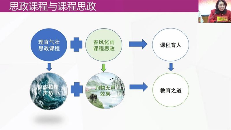 本期活动由教育部课程思政教学名师,国家级一流专业建设点负责人,国家级一流课程负责人徐桂华教授主持,主题为“以立德树人为根本,以课程思政为抓手,培养五育并举一流人才”。活动伊始,徐教授强调所谓“教育”即是以知识体系与价值体系的有机结合为主要标准,强调了“好课程”的重要性。同时强调,五个层次的教学活动的相互支撑是内化、明确、建立、规范、丰富、建设、设计和评价课程思政的的内在意蕴,是建构“五育并举”思政育人特色方案的必然要求。活动以“中医临床护理学”教育部课程思政教学团队为依托,聚焦课程思政教学设计与创新,展示护理学专业课程思政的教育教学理念、设计思路、实施路径等;重点围绕“中医临床护理学”课程与思政交融,研讨如何确立思政理念目标、挖掘课程思政元素、建设课程思政案例库、丰富课程思政形式、劳动教育融入思政、开展课程思政评价,为新医科背景下五育并举人才培养模式构建及课程思政教学改革提供思路和借鉴。严姝霞老师也分享了“课程思政”案例库的建设过程,从湿毒疫的中医护理角度对思政课程建设进行了介绍。这种新颖的思政教学形式对于树立中医文化自信、根植医学职业素养、探索发现与创新改革起到了重要的信念推动和价值引领。