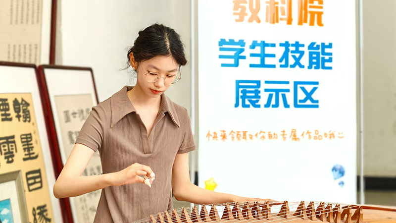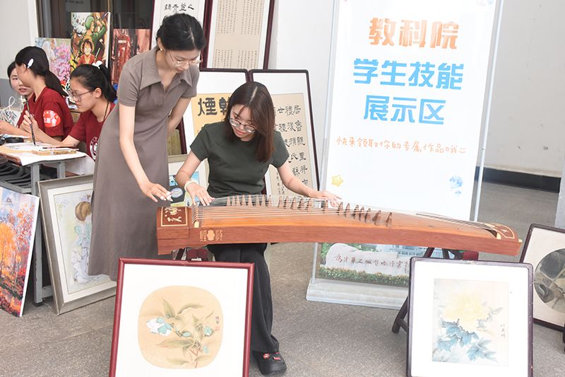 交流专业技艺,继承文化传统。教科院的迎新活动不仅是一次简单的迎接仪式,更是一次学生专业成果的展示。十余张展板全面生动地展示了学院的办学历史、发展现状和育人成果;书画作品让萌新们看到了“明天的我”;手绘班牌以及现场创作的书法折扇和绘画,让新生一见倾“新”。志愿者们独具创意,纯手工与新生一起制作的非遗漆扇精妙绝伦,现场古筝声响起,委婉动听。“古筝雅韵,漆扇传情”,旨在通过传统文化的展示,为新生们带来了一场视听盛宴。专属的“未来可期”百事可乐让新生带着梦想和希望起航。在文化互动与心灵交流中,让每一位新生感受到了教科院大家庭的独特新意与无限创意。这些活动不仅展现了教科院学子的专业素养和创意才华,也让新生们感受到了学院独特的艺术魅力和文化底蕴。