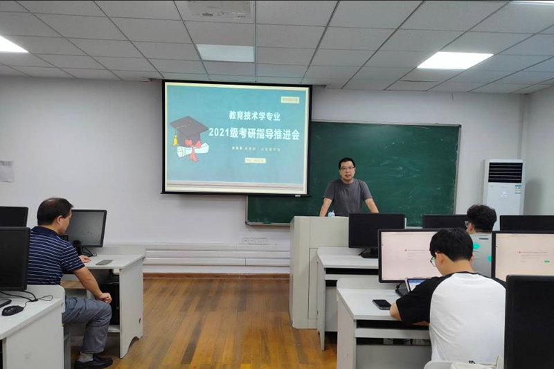 教科网9月14日电(记者 耿旭)为助力教育技术学专业2021级学子明确考研目标,科学规划备考策略,9月13日下午,一场别开生面的考研指导推进会在教科一号楼201机房成功举办。此次会议由教育技术学系主任蒋霞老师主持,参加会议的领导老师有:教科院副院长杨绪辉老师、教育技术学系教师代表谢同祥老师和卢强老师,教育技术学系副主任申小春老师,教科院2108班全体备考学生共同参与。