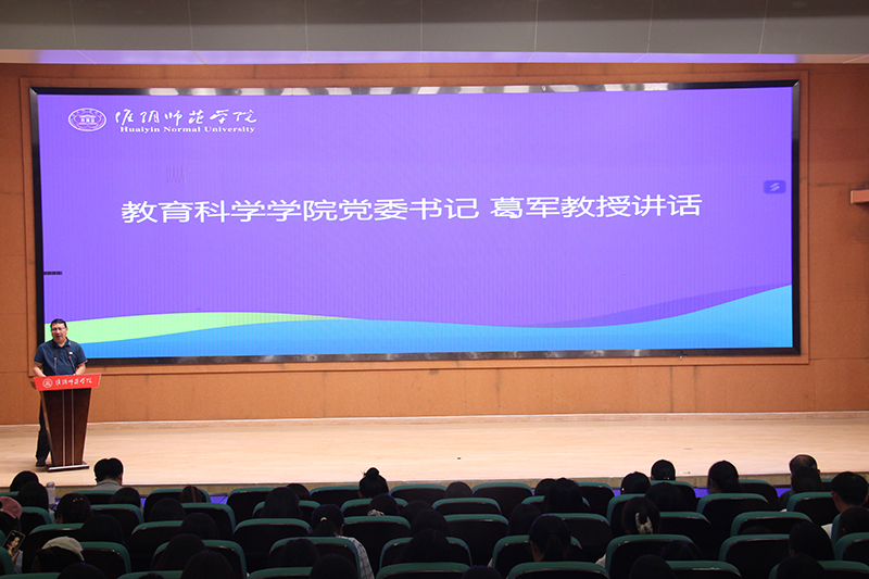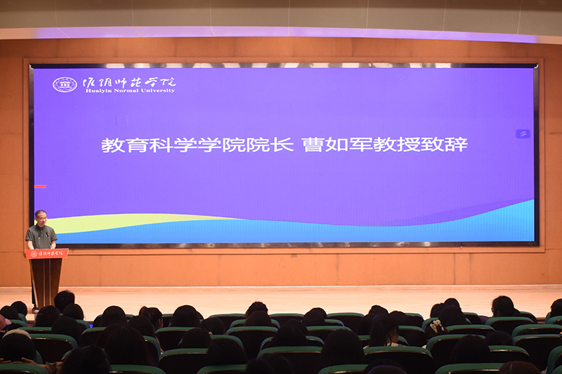 伴随着院合唱团带来的歌曲《彩虹》,开学典礼正式拉开序幕。院长曹如军上台致辞。他以“‘明’师培养之摇篮”为题,向新生们详细地介绍了教科院“魅力教科”“活力教科”“实力教科”以及“潜力教科”等四张名片,这些名片不仅展示了教科院的独特风采,更体现了其对卓越教师的全面培养理念。在此基础上,曹如军表达了对新生们的殷切期望,他热切希望立志成为卓越教师的新生们能够尽快融入教科院这个温馨和谐、充满活力的大家庭,共同书写属于他们的辉煌篇章。