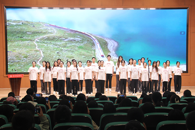 最后,全体师生合唱歌曲《歌唱祖国》,在歌唱中体会爱国情怀,抒发了对未来四年大学生活的美好愿景。
