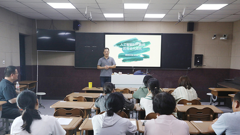 教科网7月7日电(记者 晏紫灵)7月5日下午,教育科学学院谢同祥教授为涟水县时码学校教师,呈现了一场关于“人工智能时代教师的专业化成长”的精彩讲座。他以富有洞见的视角剖析了教师专业化成长的原因及其实现路径,并展示了人工智能时代如何改变教育生态,以及教师在这一变革中所扮演的关键角色。他提出,只有不断提升自身的专业素养,教师才能更好地适应这一变革,为学生提供更高质量的教育。并强调了在人工智能时代,教师必须通过终身学习和创新来不断推进自身的专业化成长。不仅为教师们指明了专业化成长的方向,更激发了他们内心深处的教育热情。