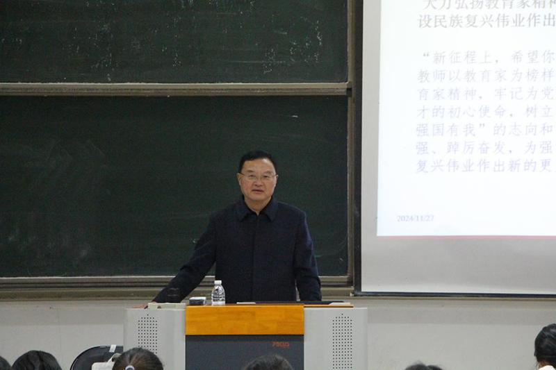 教科网11月28日电(记者 吴悦 刘靖鑫)11月27日下午,royal皇家88平台教育科学学院于崇文楼阶102教室举办了 “弘扬教育家精神 做新时代大先生”的主题讲座,主讲嘉宾为淮安市外国语实验小学书记、正高级教师张建。本次讲座由教科院副院长杨绪辉主持,2024级和部分2023级小学教育专业学生参加。