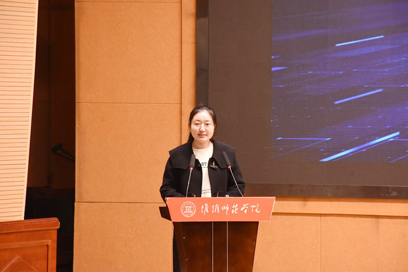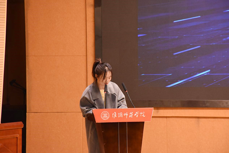“挑战杯”项目学生代表2309班刘欣语同学分享了其在“关爱上线·暴力离线”挑战杯项目中的丰富经历与深刻成长感悟。刘欣语强调了实践在个人成长和知识转化过程中的核心作用,鼓励同学们实现从思考“为什么”到“怎么做”的转变,实现从被动接受知识到主动思考、积极提出见解的角色转变,在实践中提升创新能力和解决实际问题能力。