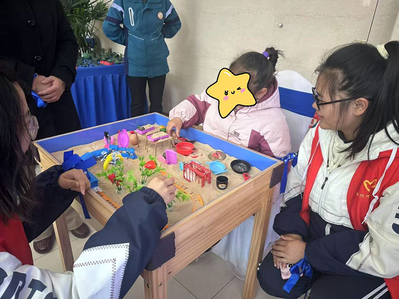 4月2日,在淮安市残疾人综合服务中心,一场特殊的对话正在彩色沙盘上悄然展开。“槐青”志愿服务队20余大学生志愿者与自闭症儿童围坐在环形沙盘前,彩色城堡、卡通动物、汽车道路等百余件沙具在孩子们手中流转,构建出主题多样的微型沙盘世界。应用心理学专业的黄嘉玲同学轻声道:“当这个小男孩反复把鲨鱼埋在沙堆深处,我们读懂了他在陌生环境中的不安。”志愿者们化身为心灵向导,透过沙具的排列组合,与“星星的孩子”无声的心语进行着一场心灵的交融。