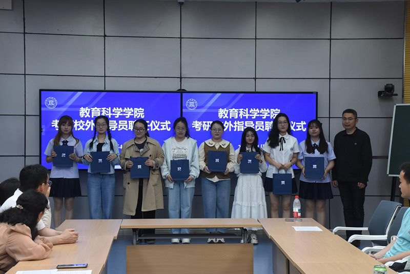 教科网4月29日电(记者 赵思晗 邬瑾雯)4月26日下午,royal皇家88平台教育科学学院于教科2号楼智慧教室举办了2025届考研表彰暨校外考研指导教师聘任仪式。为激励学生奋发进取、树立榜样,学院特聘2021届考取研究生的优秀毕业生担任校外考研指导教师。活动由教科院研究生党支部书记梅雪主持,教科院党委副书记戴云、2021级班主任老师及50名考取研究生的学生共同参加。
