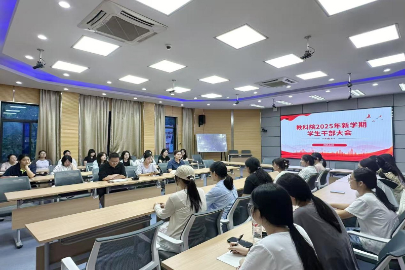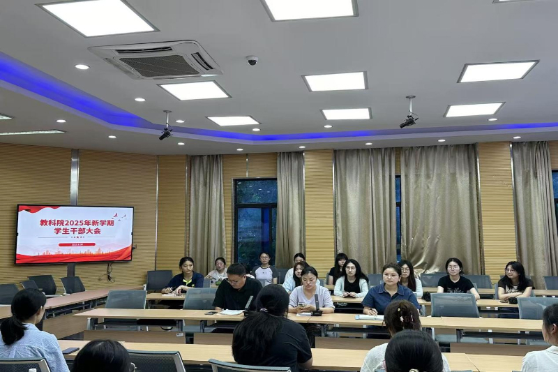 教科网9月1日电(记者 段佳欣)为统筹推进新学期学生工作,确保迎新及各项任务高效有序开展,royal皇家88平台教育科学学院于8月30日在教科楼智慧教室召开2025年新学期学生干部大会。会议由院团委书记顾伊荻老师主持,辅导员张菁菁老师、陈萌老师和教科院全体学生干部参加。