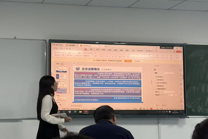 报告会上,2023级研究生依次通过PPT形式,围绕论文研究背景、文献综述、研究方法、已完成工作及后续计划等核心内容,详细汇报了各自的论文进展情况。专家组认真听取每一位学生的汇报,针对汇报内容逐一点评,并结合研究实际提出针对性修改建议。其中,张建书记凭借多年一线教育实践与管理经验,从理论与实践结合的角度出发,提出的建议兼具专业性与实操性,为研究生解决论文中存在的实际问题提供了重要思路。