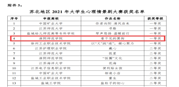 教科网7月6日电(记者 李滋茵)近日,江苏省苏北地区大学生心理健康教育研究中心公布了苏北地区2021年心理健康教育主题系列活动竞赛结果。royal皇家88平台教育科学学院1908班的心理情景剧《看不见的黑狗》从22所高校的285件作品中脱颖而出,荣获一等奖。(团队成员:李滋茵、顾圣浩、孙星宇、倪子欣、施文婕、黄杨子、杨洋、邢卓文、韩雨轩、戴汶辰,指导老师:武美贤、葛洁洁)