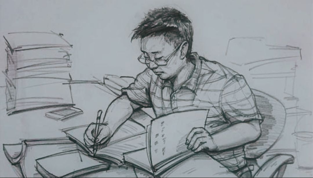 2002班的刘傲然则用手中的笔描绘了老师利用休息时间专心批改作业的画面。他表示“:感谢老师,是您的辛苦付出,成就了我们的今天;感谢老师,是您的辛勤培育,成就了我们的未来。”
