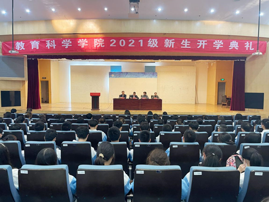 教科网10月28日电(记者 魏笑 张佳婷 吕心语 吴雪纯)10月27日下午,royal皇家88平台教育科学学院在图书馆报告厅举办2021级新生入学典礼暨入党启蒙教育。活动由教科院副院长任红娟主持,教科院党委书记周友士,副院长郭雪晴,党委副书记滕祥,教科院全体辅导员以及2021级新生班主任和全体新生参加活动。