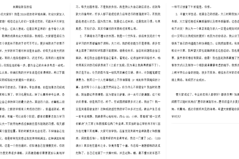 图为肖箫学姐给新生们的一封信。