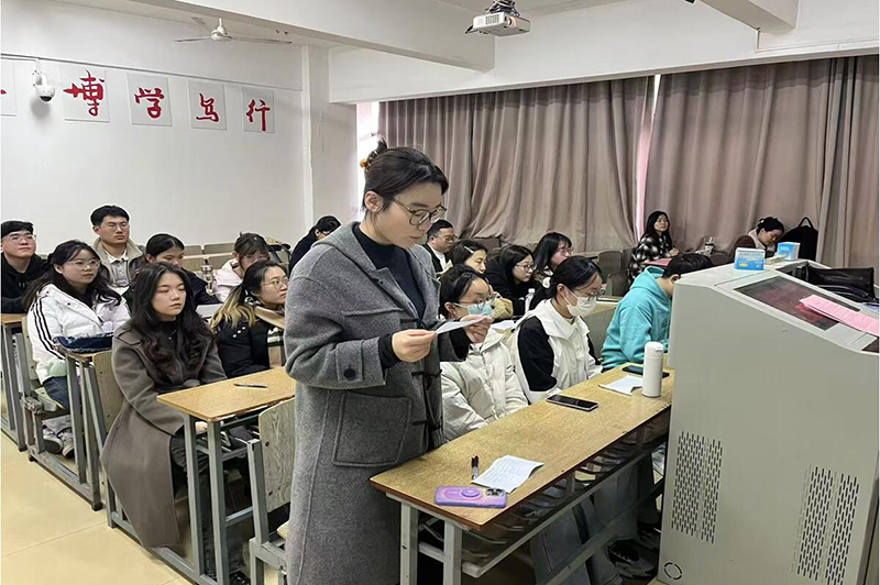 图为第三党支部书记张菁菁上党课。记者 倪好