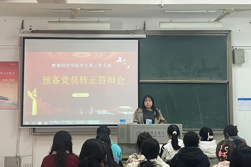 教科网12月1日电(记者 潘架丹)为扎实做好党员发展工作,进一步加强党员队伍建设,教育科学学院党委学生第一党支部、学生第二党支部、学生第三党支部于12月1日分别召开支部预备党员转正答辩会。本次转正答辩党员共14人。会议由各支部书记主持,各支部全体党员参会。
