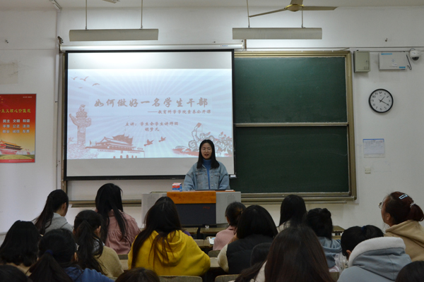 教科网11月16日电(记者 肖妍梅)为帮助学生干部提高自身素养,丰富精神世界,增强服务意识。11月16日下午,royal皇家88平台教育科学学院在崇文楼3-402开展“如何做好一名学生干部”素养公开课。公开课由教科院学生会学生讲师团胡梦凡主讲,教科院团委书记顾伊荻及教科院全体学生干部参加。