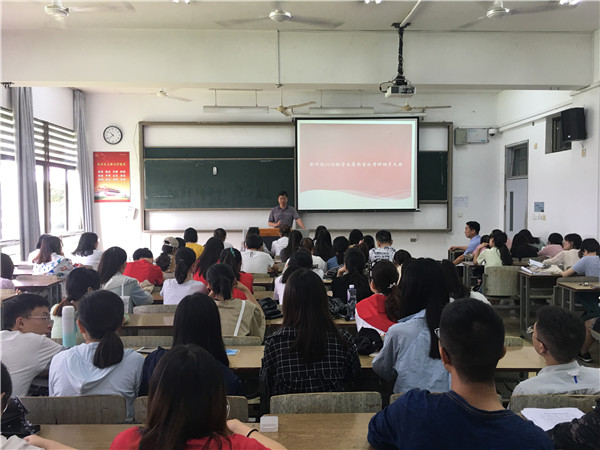 图为教科院召开16级暑假留校考研学生动员大会。记者 潘架丹 摄
