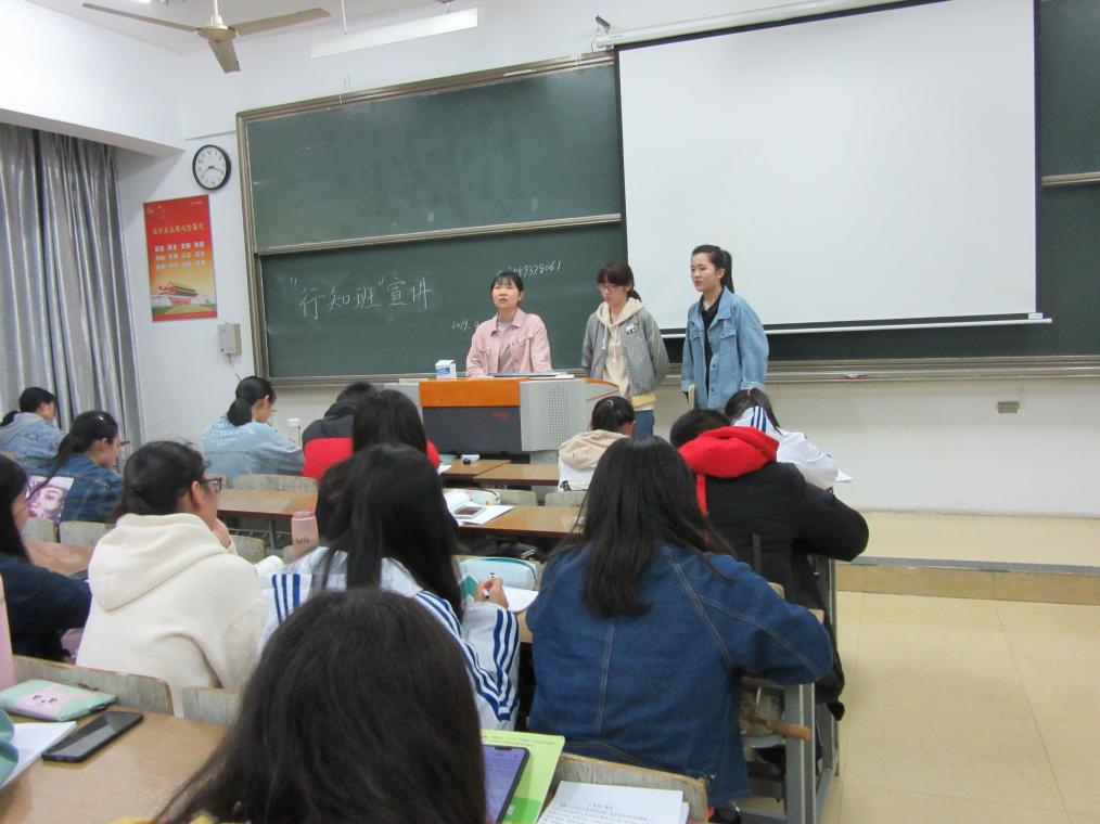 教科网4月27日电(记者 杭姝妤为确保2019年“行知班”选拔工作顺利进行17级行知班同学组成宣讲团队4月25日晚自习到选拔对象所在班级行宣讲,夏晶莹同学为本次宣讲主要负责人。宣讲对象为17级和18级小学教育(师范)、教育技术学(师范)学生。