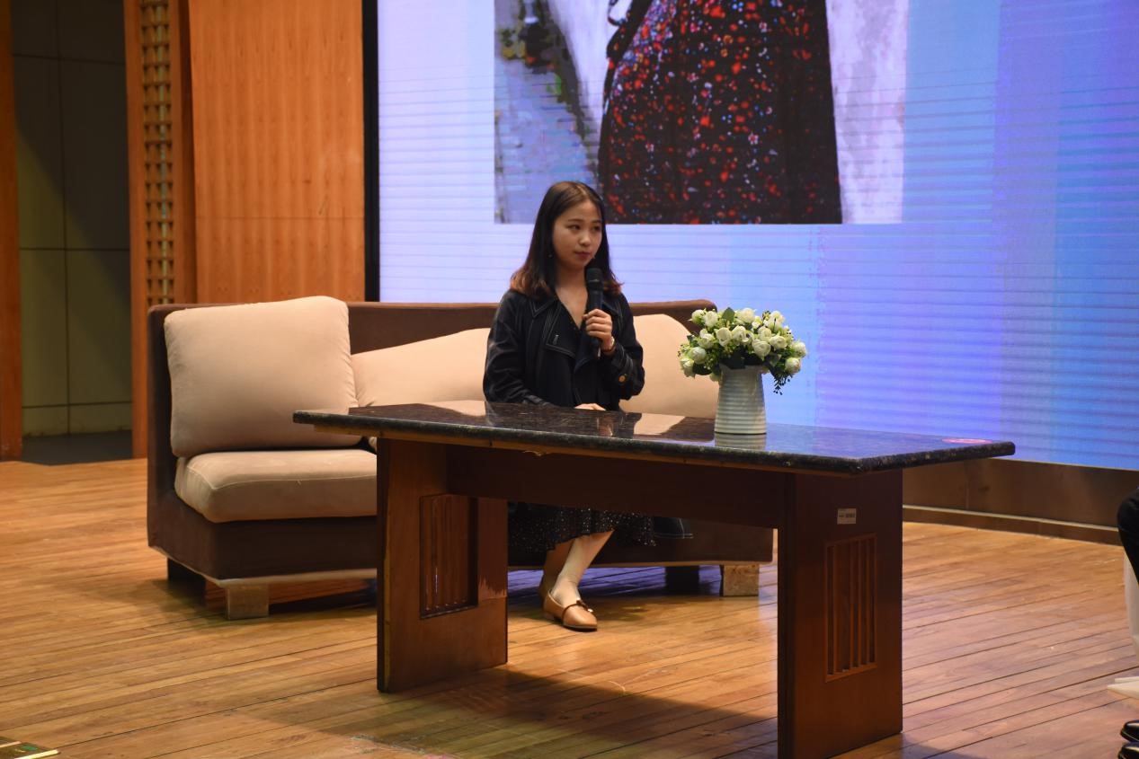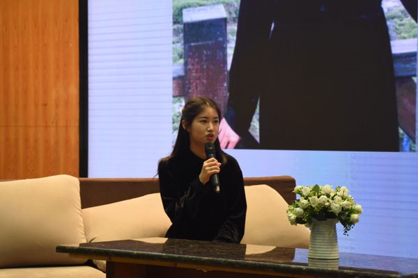 图为教科院学生会主席丁澜主讲现场。记者 华夏雨