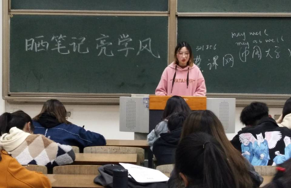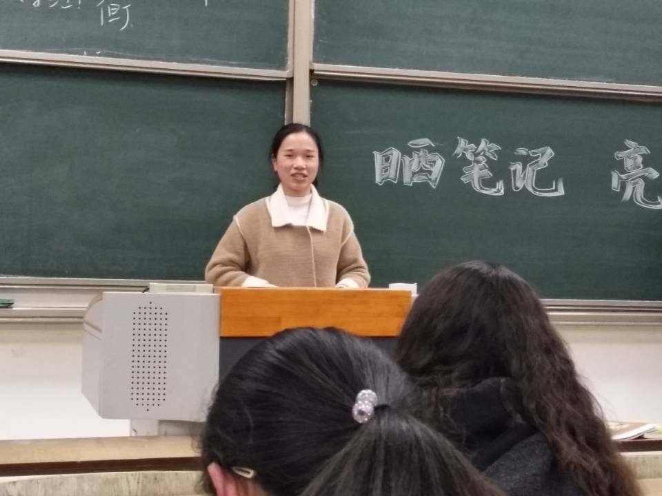 教科网3月28日电(记者 嵇庆园 杨婧)为进一步引导教科学子养成记录与整理笔记的良好习惯,加强学风建设,提高学生课堂学习效率。教育科学学院团委、学生会以“学霸笔记”课堂笔记评选大赛为契机,于3月25日晚开展“晒笔记 亮学风”活动,走进17、18级各班,展示在比赛中涌现出的一批优秀笔记。