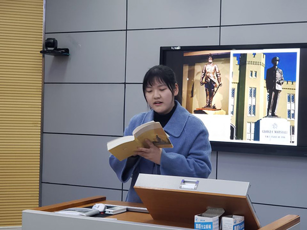 活动吸引许多参赛者,选手们赛前精心准备,制作精美的PPT,配以烘托气氛的背景乐。比赛中,在场所有人深陷文章的魅力中。参赛者用情感丰富的嗓音,借由名家文章,抒发自己对古典诗词的赞扬,对祖国美好河山的深深爱恋,对现代人愚昧的跟风现象的抨击。学生们读书后的万千想法,通过抑扬顿挫的朗诵,淋漓尽致的表现出来。1709班学生徐前朗诵的《我爱你中国》,激扬澎湃的篇章书写着对祖国大好河山的赞叹;1803班学生郭烁针对网上所谓他人的“亲身经历”厉声讨伐,呼吁大家不要被这类不科学的做法蒙蔽双眼;1801班学生齐琦朗诵着《天上的草原》,清朗的声音里带着对家乡的想念。观众静静地坐着,聆听着别人内心的丰富情感。