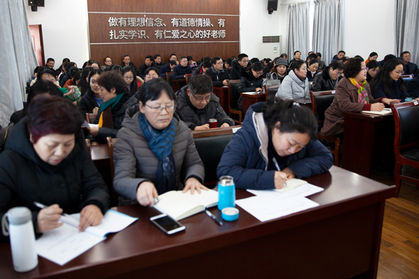 图为教科院全体教职工集体学习现场。图为 陈逸行 摄