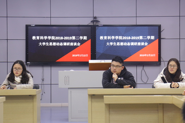 教科网2月24电(记者 潘架丹 顾伊荻2月22日12:30,新学期伊始,30名来自于教科院各年级、专业的学生代表们与学院辅导员在教育科学学院智慧教室,共话寒假见闻、关注热点与新学期规划。