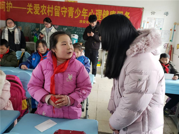 教科网1月14日电(记者 吴文萱 邵莹莹) 1月14日,教科院博爱心理健康协会瓜仔小分队前往淮安市和平镇中心学校,与阳光心理服务中心的老师们共同开展“传递青春正能量,承载留守学生梦”活动。时值寒冬,阵阵寒风不会削减同学们开展志愿活动的热忱,不曾熄灭瓜仔小分队成员们服务社区的热情。
