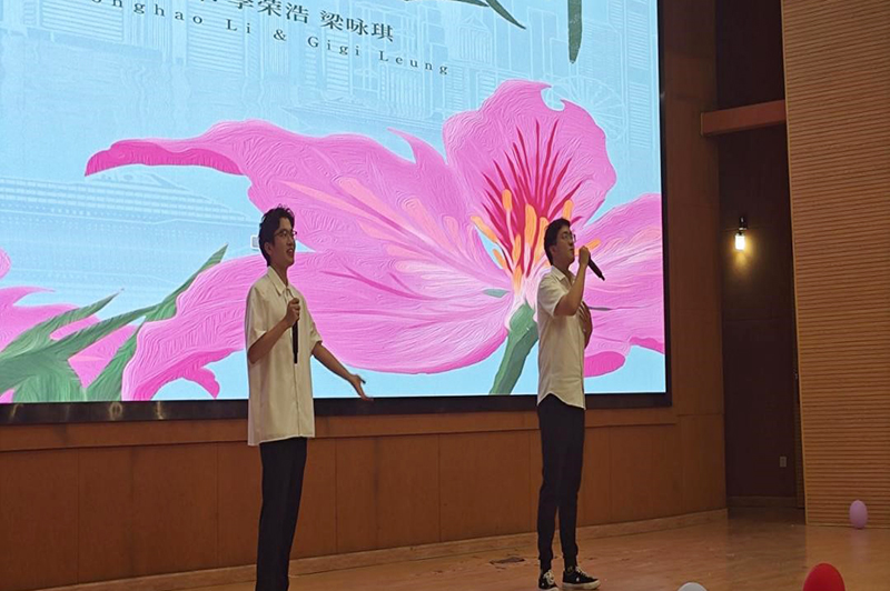 图为2107顾思诚、韩永松同学演唱的歌曲《紫荆花盛开》。记者 许振烨