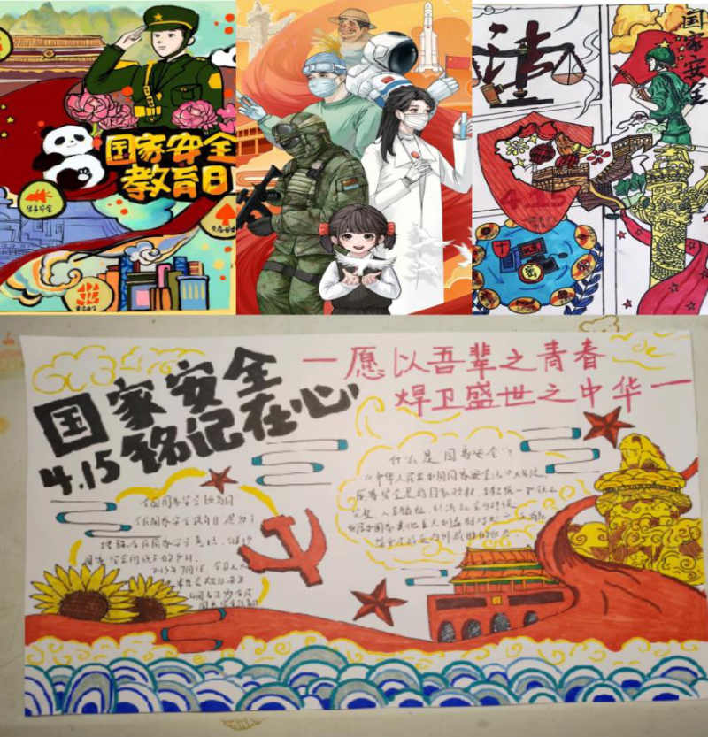 活动二板块则聚焦国家安全,同学们围绕总体国家安全观,精心设计了一系列宣传海报。海报内容涵盖政治、经济、文化、科技、生态等多个领域,既有宏观视角的深刻洞察,也有微观细节的细腻表达,充分彰显了青年一代对国家安全的深刻理解与强烈责任感。