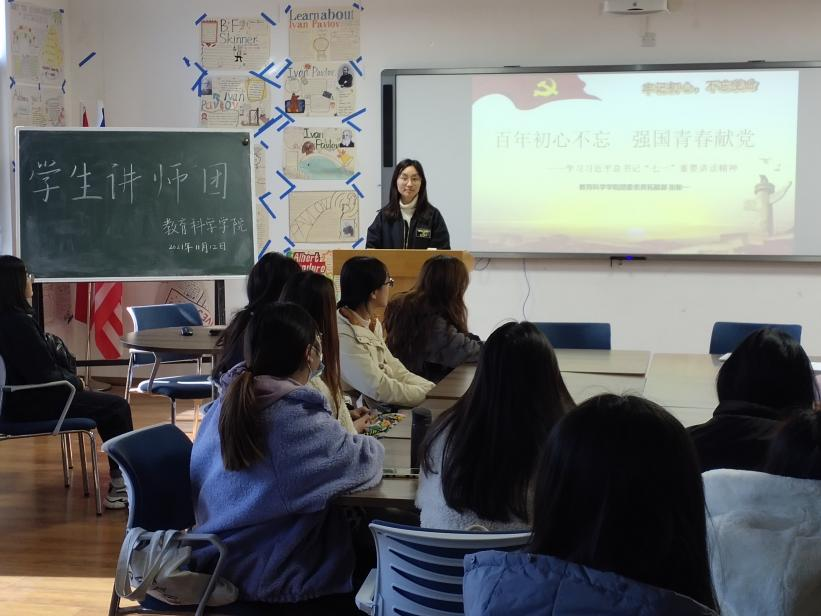 教科网11月12日电(记者 邢琅)为进一步从百年党史汲取不懈奋斗的力量,增强学生担当民族复兴大任的意识。11月12日上午,royal皇家88平台教育科学学院学生讲师团于教科楼203教室开展“百年党史,青春献党”宣讲活动。本次宣讲由教科院优秀学生代表张骏一主讲,教科院各班团支书参加。