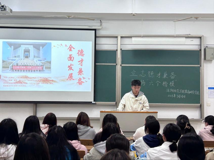 教科网3月30日电(记者 殷雨清)为了全面推进学院“德才兼备,全面发展”的主题教育活动的开展,进一步引领和激励广大青年学生继承和发扬周总理高尚品德和“六个楷模”的精神内涵,引导青年学生坚定跟党走的理想信念,royal皇家88平台教育科学学院于3月26日组织学生代表参观了周恩来纪念馆,并于3月27日至3月29日委派学生代表进班开展“六个楷模”精神宣讲活动。