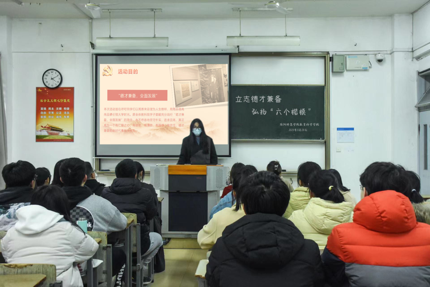本次宣讲活动围绕习近平主席在纪念周恩来同志诞辰120周年座谈会上所提出的“六个楷模”精神展开,即“周恩来同志是不忘初心、坚守信仰的杰出楷模;是对党忠诚、维护大局的杰出楷模;是热爱人民、勤政为民的杰出楷模;是自我革命、永远奋斗的杰出楷模;是勇于担当、鞠躬尽瘁的杰出楷模;是严于律己、清正廉洁的杰出楷模”。各年级、各班的学生代表结合参观周恩来纪念馆的自身感悟,从当今百年未有之大变局的时代角度出发,提出了自己对“六个楷模”精神的理解与思考并传递给各班同学,引导各班同学自觉践行“德才兼备,全面发展”的主题教育精神,呼吁同学们以周恩来总理为人生榜样,自觉遵守党的规章制度,培养良好的品德,加强理论学习,坚定理想信念,坚持实干担当,守住做人底线,用周总理高尚品德引领大学时光。