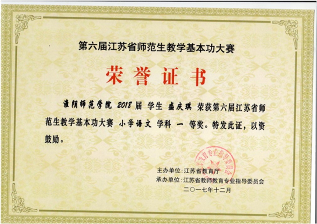 图1  royal皇家88平台小学教育专业学生江苏省师范生教学基本功大赛获奖证