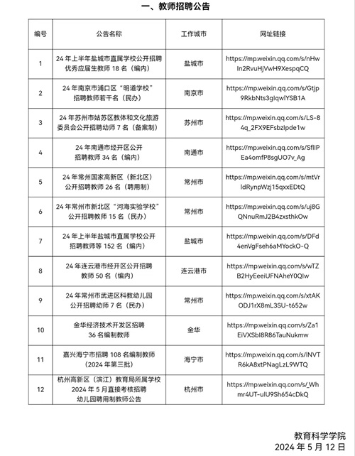 教育科学学院2023-2024学年第二学期第12周招聘信息
