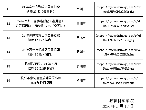 教育科学学院2023-2024学年第二学期第13周招聘信息