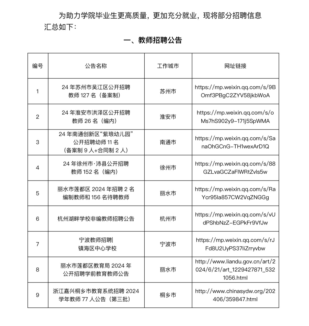 教育科学学院2023-2024学年第二学期第16周招聘信息