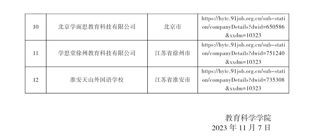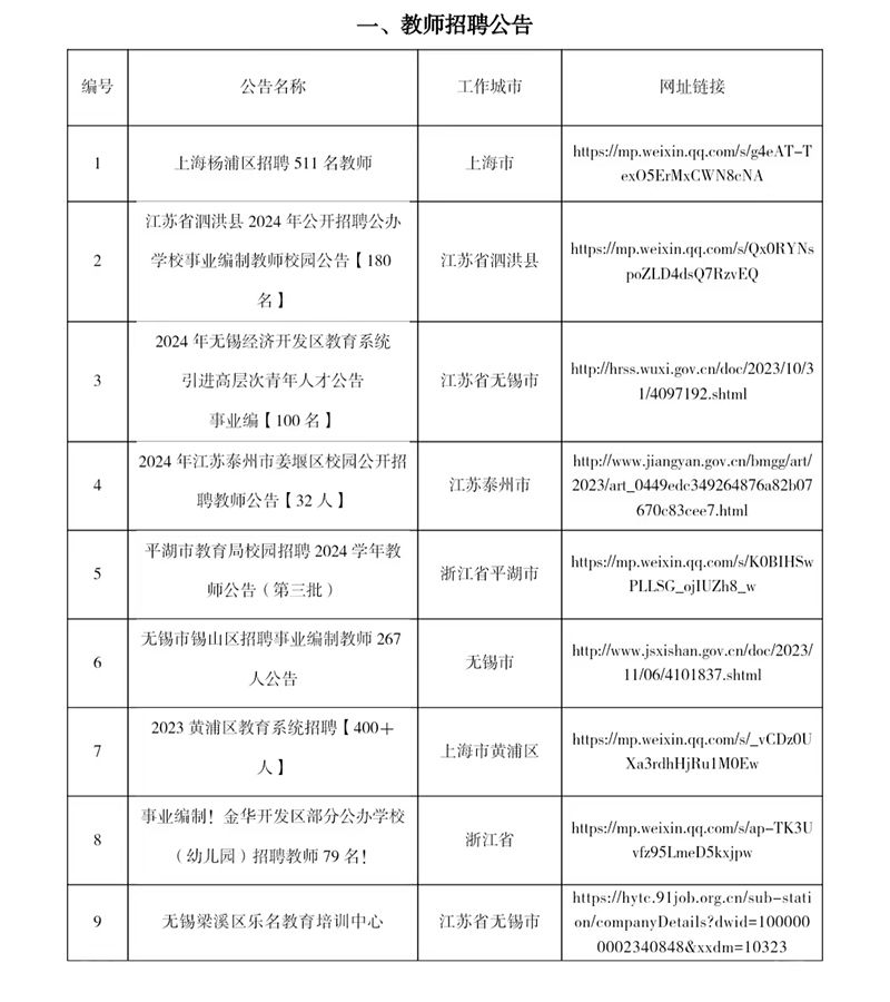 教育科学学院2023-2024学年第一学期第10周招聘信息