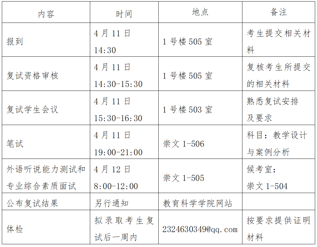 五、复试日程安排