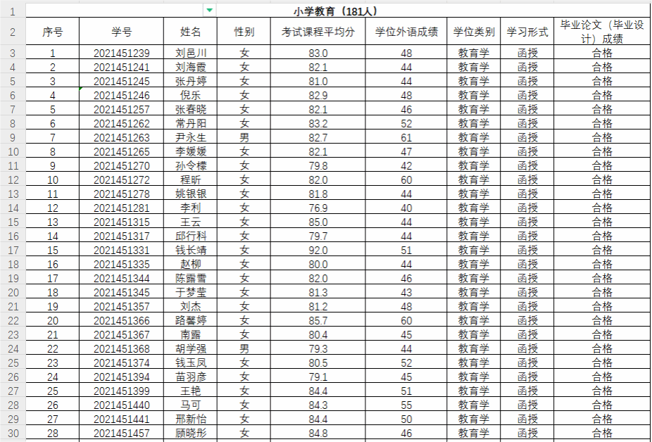 教育科学学院2023届成人继续教育本科毕业生学士学位授予情况公示