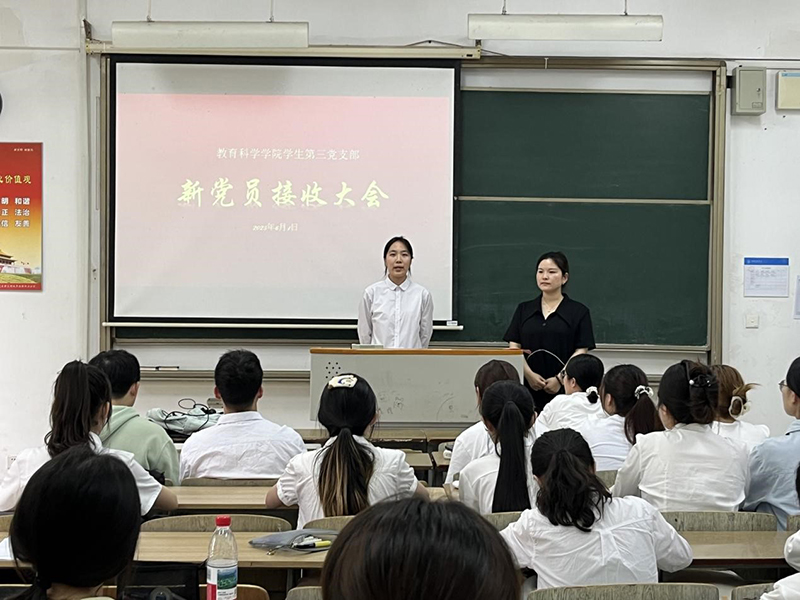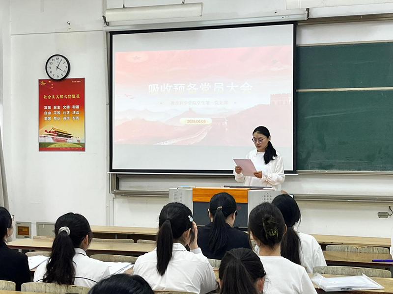 教科网6月3日电(记者 潘架丹)为扎实做好党员发展工作,进一步加强党员队伍建设,教育科学学院党委教育学系党支部、心理学系党支部、学生第一党支部、学生第二党支部、学生第三党支部、研究生党支部于6月3日分别召开支部预备党员接收大会。本次学院党委共接收预备党员党员26人。会议由各支部书记主持,各支部全体党员参会。