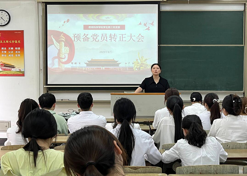 教科网6月3日电(记者 潘架丹)为扎实做好党员发展工作,进一步加强党员队伍建设,教育科学学院党委学生第一党支部、学生第二党支部、学生第三党支部于6月3日分别召开支部预备党员转正大会。本次学院党委共转正党员36人。会议由各支部书记主持,各支部全体党员参会。