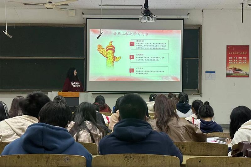 何沁以“青春向党,以梦为马”为主题进行宣讲。宣讲内容从四个方面展开——“何为青马工程”、“青马工程之学习内容”、“青马工程程之意义”、“如何贯彻青马工程”。此次宣讲加强了同学们的马克思主义政治思想教育,助于帮助同学们更好地理解和把握党的基本路线、方针和政策,加强了同学们的社会责任感以及国家认同感,进一步提升了党的组织建设水平。
