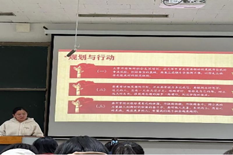 在第三部分中,主讲人向同在淮师的同学们发出了号召,她代表团委学周部呼吁我们奋发向上,发挥主体意识功能,致力精神的传递。星光不问赶路人,岁月不负有心人。作为新时代的青少年,我们身上有独属于自己的使命,青年兴则国家兴,青年强则国家强!“青年一代有本领,有担当,国家就有前途,有希望。”