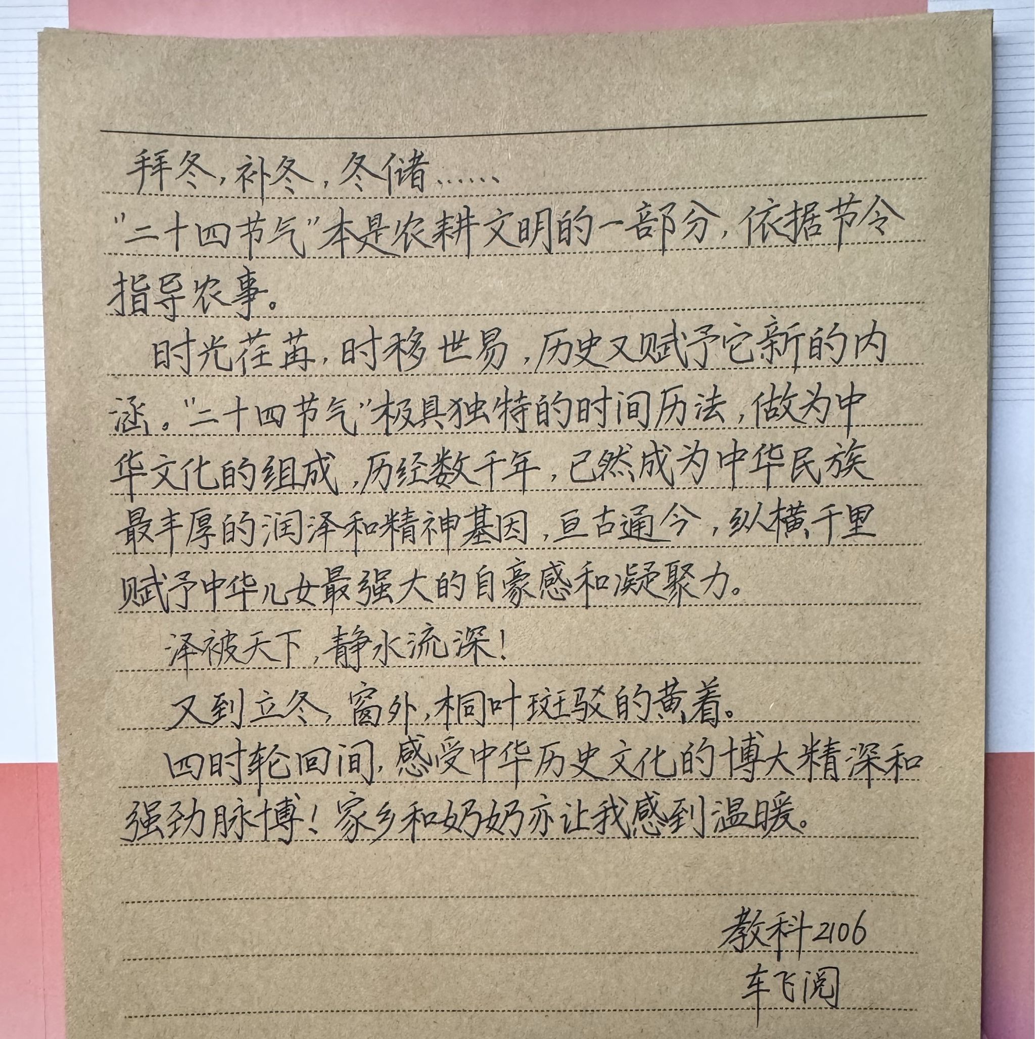 温暖的颜色,秀丽的字迹,书信内容传达出的温暖,贴切符合此次活动的主题:冬日里的温暖。